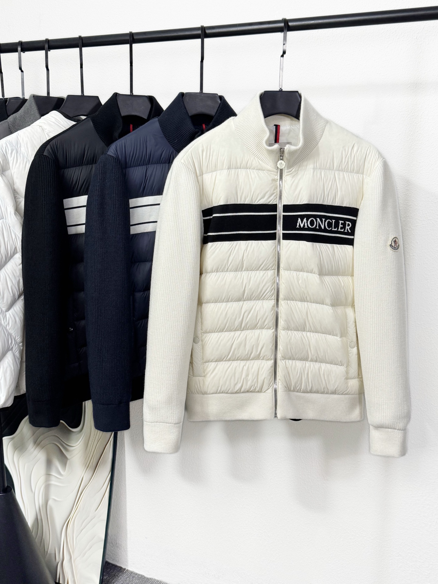 🅿️310 𝐌 𝐎 𝐍 𝐂 𝐋 𝐄 𝐑 💫 2024 秋冬蒙口新款女士立领羽绒拼接羊毛针织袖外套 款号:m女刺绣短针织 颜色:黑色 白色 尺码:1 2 3 4 ⬆️🆕❤️强烈推荐 23年秋冬系列 monc*新款拼接羊毛针织袖立领羽绒服外套 刺绣logo后背设计 90绒填充 yb定制 高端品质 跑量
