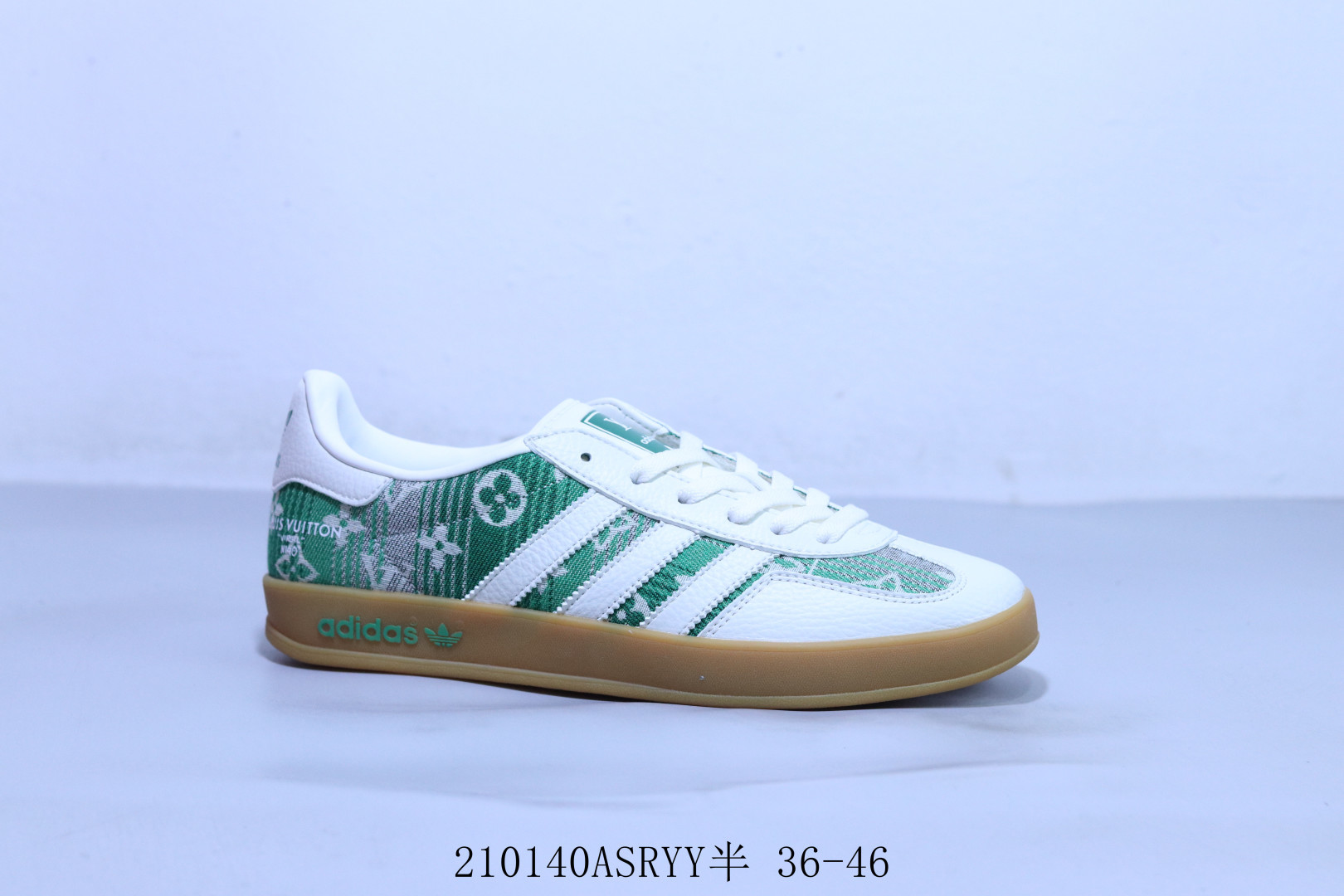 本地💰230优势放店 【定制版】Adidas originals GAZELLE INDOOR Indoor T头鞋 LV联名 防滑耐磨轻便 低帮板鞋 以柔软的皮革鞋面搭配耐磨橡胶外底,展现出复古与现代的融合。鞋面采用细腻纹理设计,搭配三条杠,尽显品牌经典。无论是运动场还是街头,这双鞋都能轻松驾驭。 货号: XD6188-101 尺码: 36 36.5 37 38 38.5 39 40 40.5 41 42 42.5 43 44 44.5 45-C9-E9