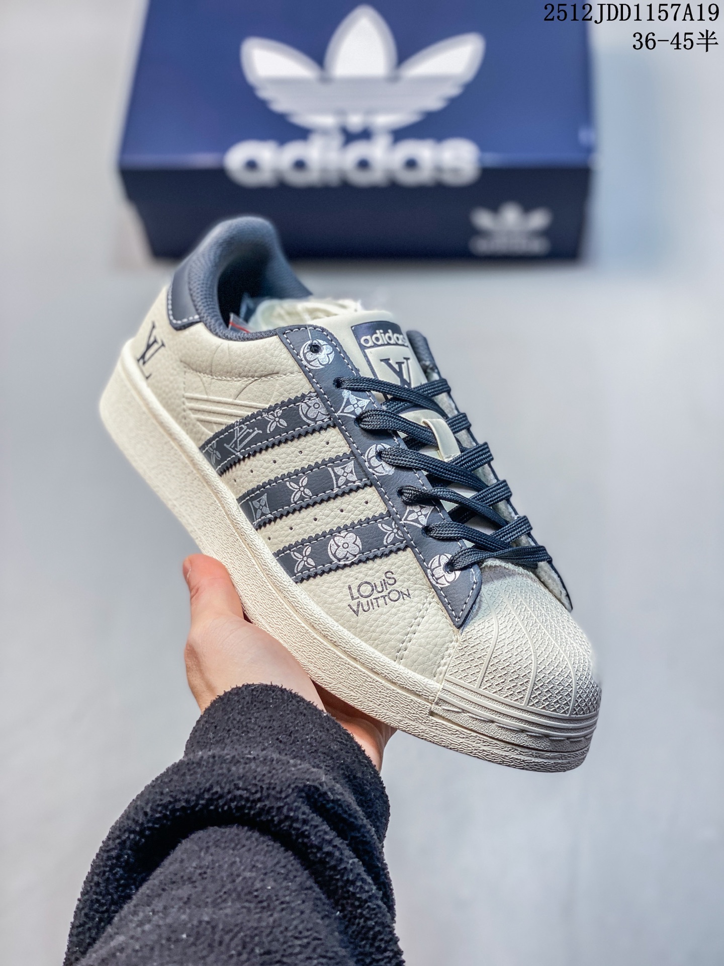 💰120 独家实拍✨C版 Adidas Originals Superstar lv联名款 米白黑 经典贝壳头官网同步 实拍首发渠道正品订单 诠释市场最高工艺水平区别市面普通真标版本,进出专柜无压力 货号:AD8008 尺码:36-45(半) 12JDD1157A19