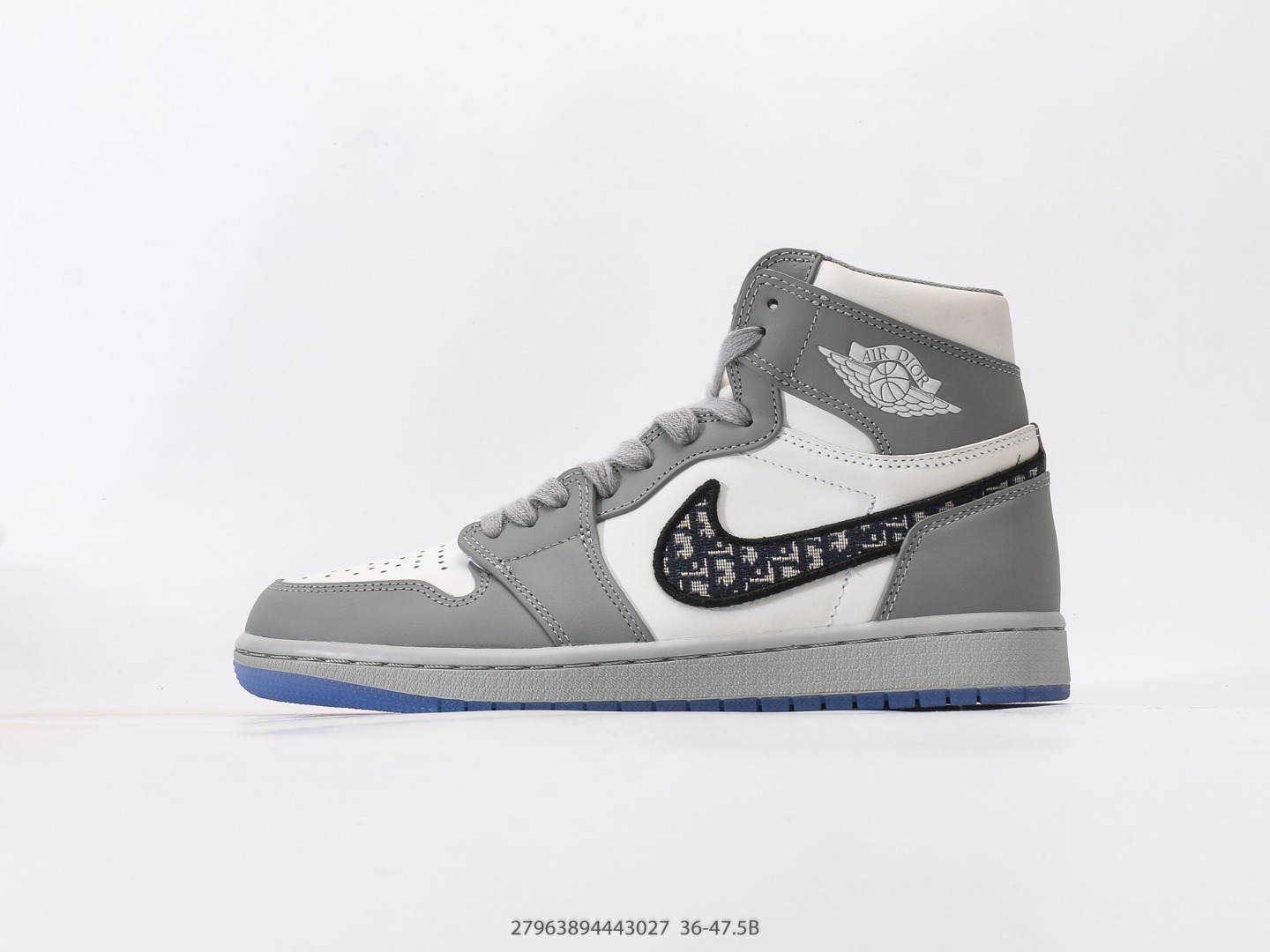💰370 乔丹 Dior x Air Jordan 1 High OG “迪奥联名”AJ1高邦 高帮休闲运动篮球鞋 鞋款选择了Air Jordan 1 High为基底打造,选择白色与深灰色拼接呈现鞋身。而鞋侧的Nike Swoosh则以黑色刺绣镶边,并满幅点缀有Dior字母印花。鞋舌整体也压印有Dior字母印花,凸显细节。而最为显眼的设计则出现在外底,醒目的蓝色水晶大底内可以透视出黑色的DIOR与飞翼LOGO,联名的身份得以凸显 尺码:36 36.5 37.5 38 38.5 39 40 40.5 41 42 42.5 43 44 45 46 47 47.5 #27963894443027