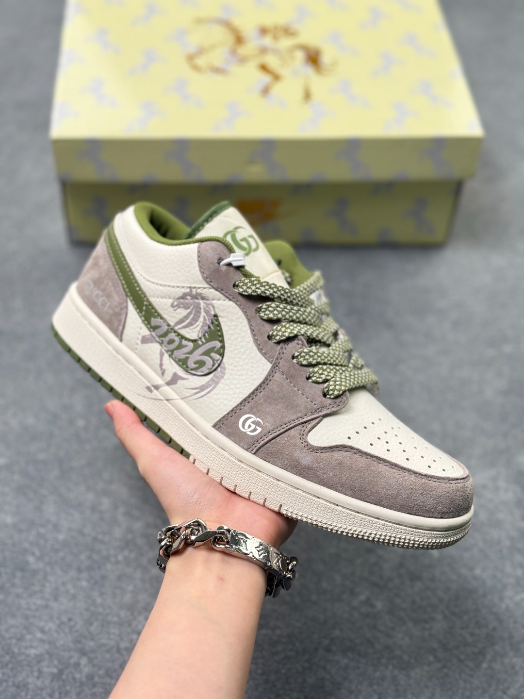 💰260 2026年新款限量发售!Nike Jordan Air Jordan 1“ 古驰联名——马年限定” 高端定制 低帮 复古 减震 防滑 耐磨 篮球鞋 定制鞋盒 大厂纯原品质出货 超高清洁度 皮料切割干净无任何毛边 细节完美 货号:XX2606-006 Size:36 36.5 37.5 38 38.5 39 40 40.5 41 42 42.5 43 44 44.5 45 12GXD1154A27