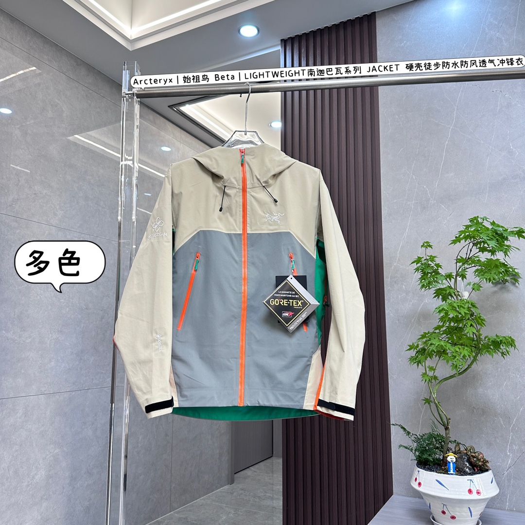 【W版纯原】 Arcteryx|始祖鸟 Beta LIGHTWEIGHT南迦巴瓦系列 JACKET 硬壳徒步防水防风透气冲锋衣 以下产品介绍: • 设计灵感:以日照金山的自然奇观为调色盘,以菲诺橙代表照耀山脊的橙色日光,空间灰和威藤棕代表山脉被日光照耀后明暗交错的颜色,丛林绿代表了生命和植被,logo处的白色代表着高处的旗云和积雪,绘出南迦巴瓦的天然风貌和高山文化.帽子后侧有隐藏的南迦巴瓦标识图案,其灵感来自南迦巴瓦山脉的轮廓,锐利棱角呼应南迦巴瓦“长矛直刺苍穹”的形态. • 面料材质:采用防水N100d - GORE - TEX Pro ISO标准90(ISO4)级别高分子材料透气薄膜与纺织品结合,达到荷叶水珠滚动效果,高度持久防水透气,防撕裂性能优异. • 功能特点 ◦ 通风设计:腋下设有YKK双向拉链,便于快速通风. ◦ 兜帽设计:配备专业可兼容的StormHoodTM兜帽,不钩挂脱落的CohaesiveTM帽兜调节器,可轻松带着连指手套或手套操作,在大风大雨中也能稳稳保护头部,支撑的帽檐可遮挡小雨和防晒. ◦ 袖口设计:冲切Velcro®魔术贴袖口粘扣带,减少累赘,方便调节. ◦ 口袋设计:衣服前面两侧大口袋可单手操作,内有拉链安全袋,方便储存物品. ◦ 安全设计:脖颈处内嵌RECCO反射器,可提升紧急搜救情形下的可见度. • 版型剪裁:3D立体仿生学设计,衣长臂弯拼接设计使活动自如,上松下收的版型,穿着舒适且行动不受限.
