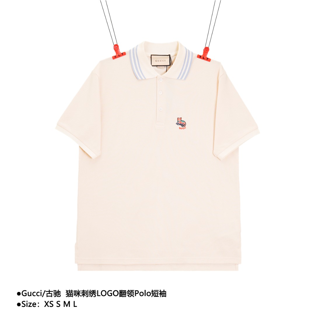 Gucci/古驰 猫咪刺绣LOGO翻领Polo短袖 选用棉质珠地网眼布打造,定制材质260g长绒棉,衣领为双系统提花定织扁机制成,有弹性,不变形,衣服全部原生布捆边,前胸双层面筒,无明线,无散口,袖口,前胸筒底,肩缝包骨,定制辅料三标!时尚百搭,要穿出时髦的街头22ss夏季新款,小红书众多博主推荐,这款Polo衫来得太是时候了,细节更用心加固领型,久穿久洗不变形,绝对高品,堪称完美! 款式编号:CC-5605605616