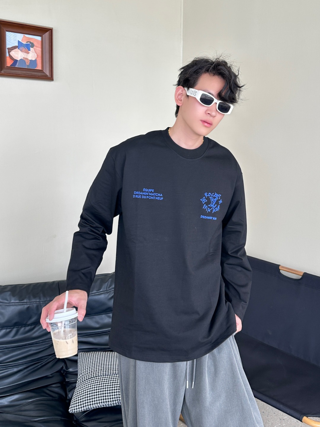 Louis Vuitton/路易威登 25Fw 梦想家涂鸦标语印花长袖T恤 上身效果#