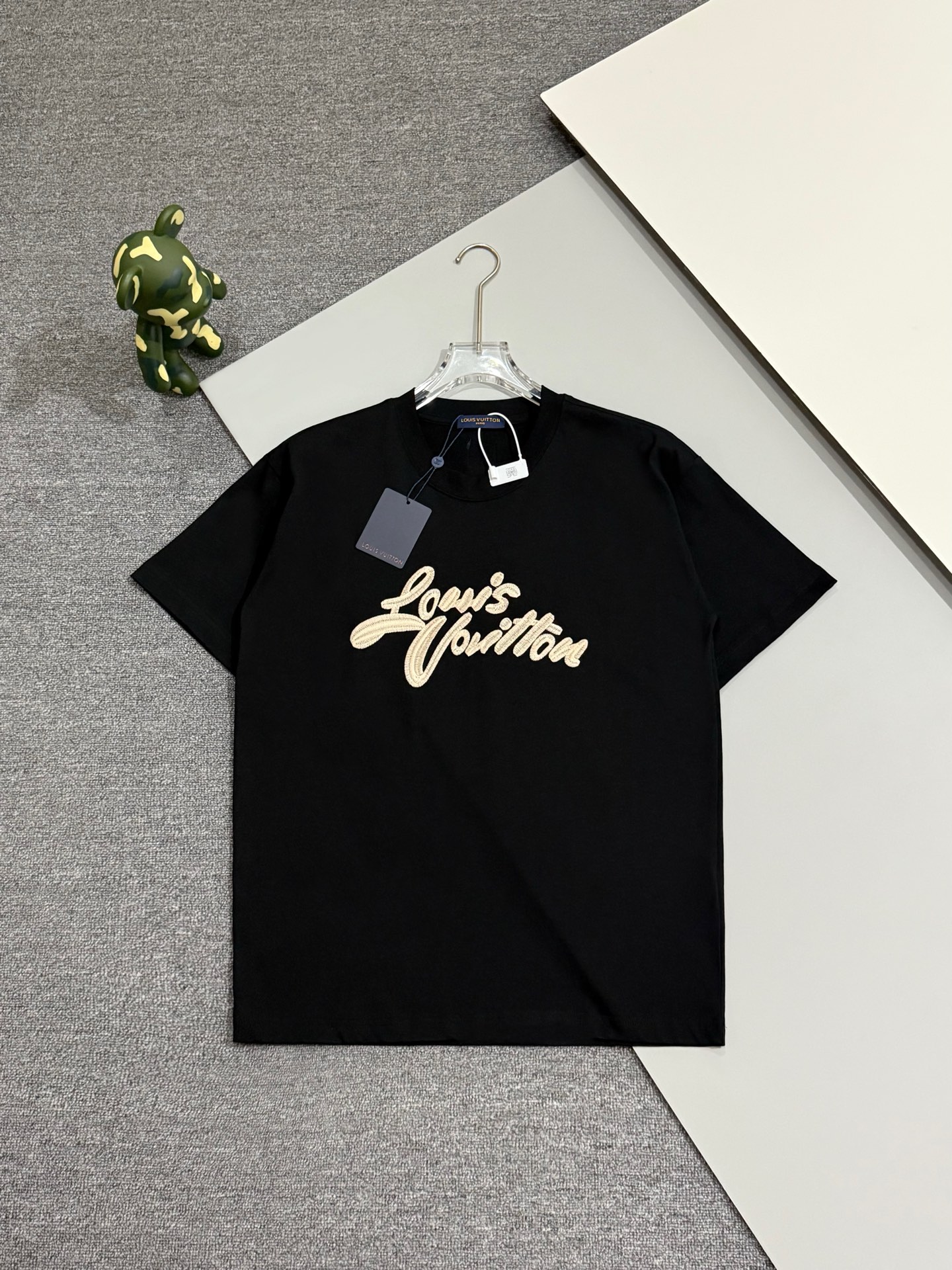 ![[高品质] Louis Vuitton 路易威登 25ss春夏新款,签名刺绣字母短袖T恤,面料采用纯棉材质,采用田岛机棉麻融入品牌刺绣.后背新造型提花小方块为休闲造型,整体走线平直细腻,面料舒适柔软,颜色一致无色差 能与同款搭配营造时尚造型,驾驭各种场合,定制辅料,三标齐全,男女同款! 颜色: 黑色,白色](https://xcimg.szwego.com/img/6aca32cf/20250613/i1749825092006_4803_0_0.jpg?imageMogr2/auto-orient/thumbnail/420x>/strip/quality/72/format/webp)