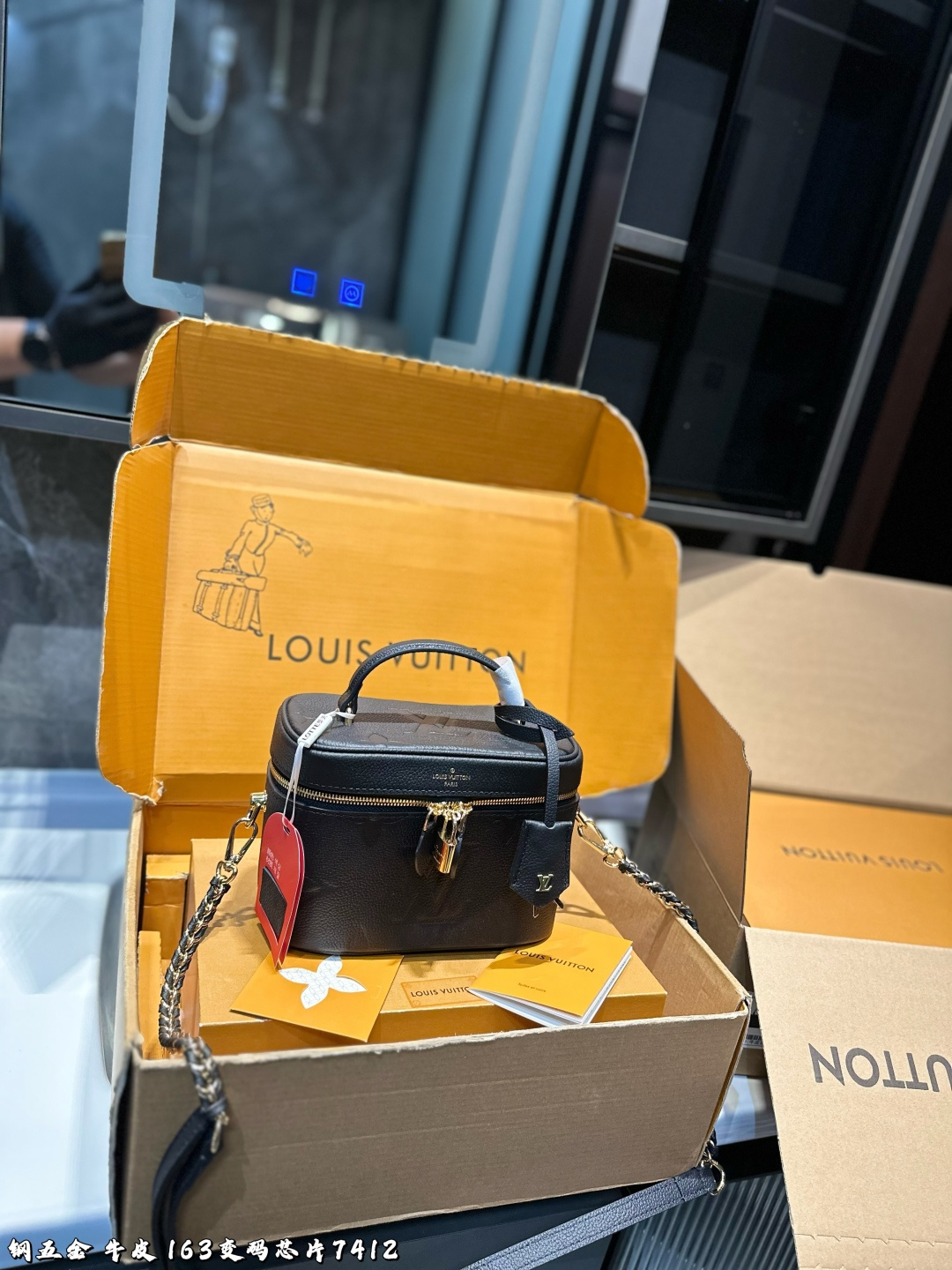 ❤️💰440(礼盒包装)❤️ LVVanity 新款化妆包 包包顶部选用深浅不一的色调增加层次感特别是老花真香!这秀款化妆包可爱又能装~手拎斜挎都很好看,足以应对所有场合 搭配休闲或者小裙子都ok,重要的是价格也很美尺寸:19*10*12cm