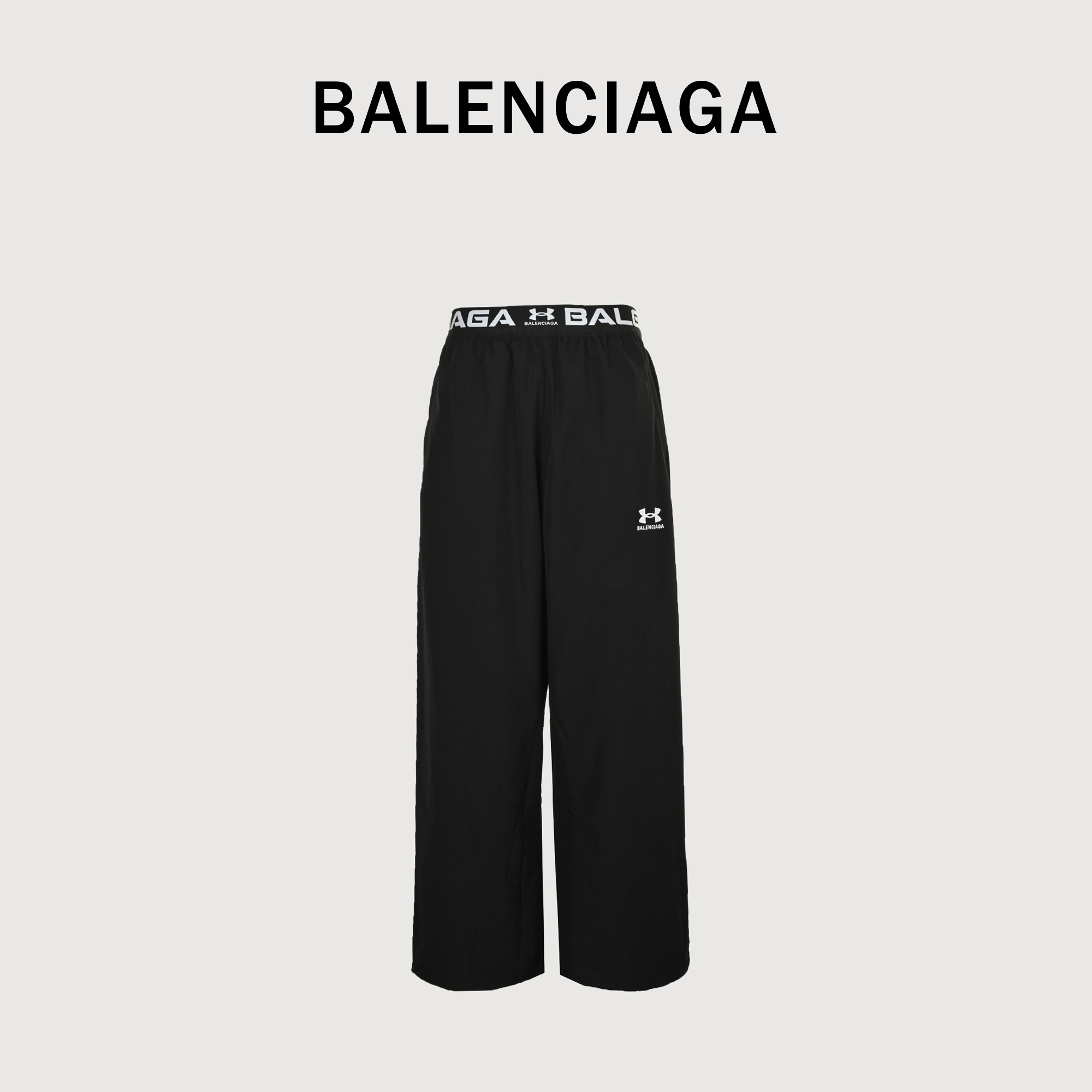 Balenciaga/巴黎世家 25ss 联名巴黎UA字母腰带双面穿长裤 -运动功能性与高级时装的工艺融合 -版型原汁原味,裤长很长,选购的时候只需要看体重即可,裤长需自行找裁缝重新量和剪裁 关于双材质复合面料结构,梭织面:采用高密尼龙塔丝隆(30D×30D,240T),经DWR防泼水处理,克重190g/m2,提供防风抗撕裂性能,针织面:定织混纺平纹针织,单面匹染,纱线经异形截面处理,导湿速率达195标准Lv.4.通过热熔胶网膜点状贴合,每平方米800个粘合点,确保双面透气率,同时避免层间位移.强化运动功能性,一年四季可穿不会因为是双面而闷热,关于刺绣:采用进口田岛ZSK 3D刺绣机,0.45mm极细针头配合400针/分钟高密度穿刺,形成直径0.6mm的微型气孔阵列(密度20孔/cm2),透气效率较常规网眼提升300%,刺绣线为Toray抗菌混纺丝,确保汗湿环境下抑菌率≥99%,关于腰带:定制提花织带腰头,用无缝提花机织造,纬向嵌入莱卡T400®双组分纤维,在30%拉伸状态下仍能保持提花图案清晰度,全球首款实现梭织-针织双面异料穿刺刺绣的时装裤,重新定义了高性能奢侈时装的边界——既满足专业运动员的极端环境需求(如马拉松选手的体温管理),又具备博物馆级时装的结构美学,代表联名设计的终极形态 注:【裤长偏长,选购的时候只需参考看体重即可,裤长可自行找裁缝重新量和剪裁】 99