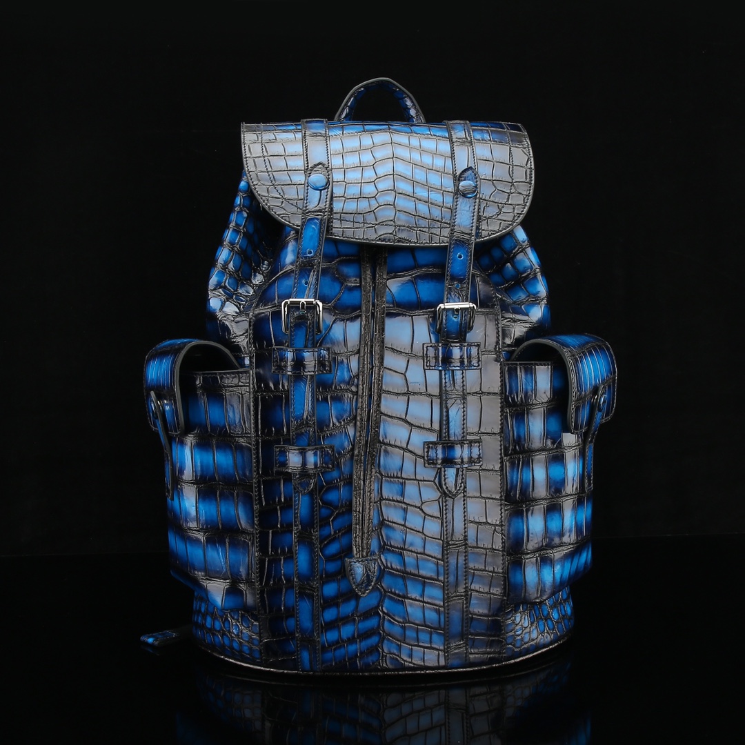 现货实拍LV款擦色鳄鱼肚皮双肩包 尺寸 -15