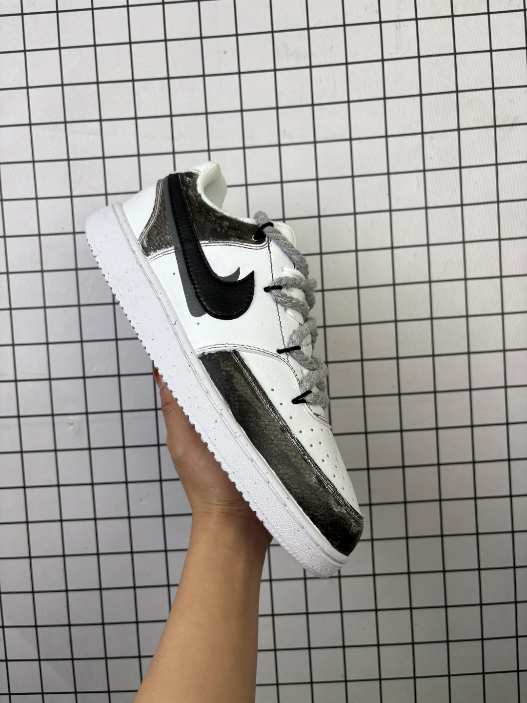 公司级✅Nike Court Vision 1 Low“幻影十字架” 手绘涂鸦定制板鞋 幻影十字架常作为一种印花图案出现,具有独特的视觉效果.将幻影十字架与梵文、马蹄等元素结合,运用丝网印花等工艺,打造出极具潮流感的服装单品,深受追求个性与时尚的人群喜爱 货号:DH2987-099 ID:329GHD1017