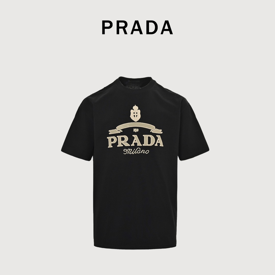 本地自取💰160 Prada 普拉达 皇冠字母 短袖T恤 上身舒适透气 可选全网独发 高品质-采用双纱纯棉280g,不缩水不退色。手感舒服,质感超强全套原版辅料,细节到位,潮男潮女必备,独家现货供应! 顶级版本 官网品质 G size:XS-L