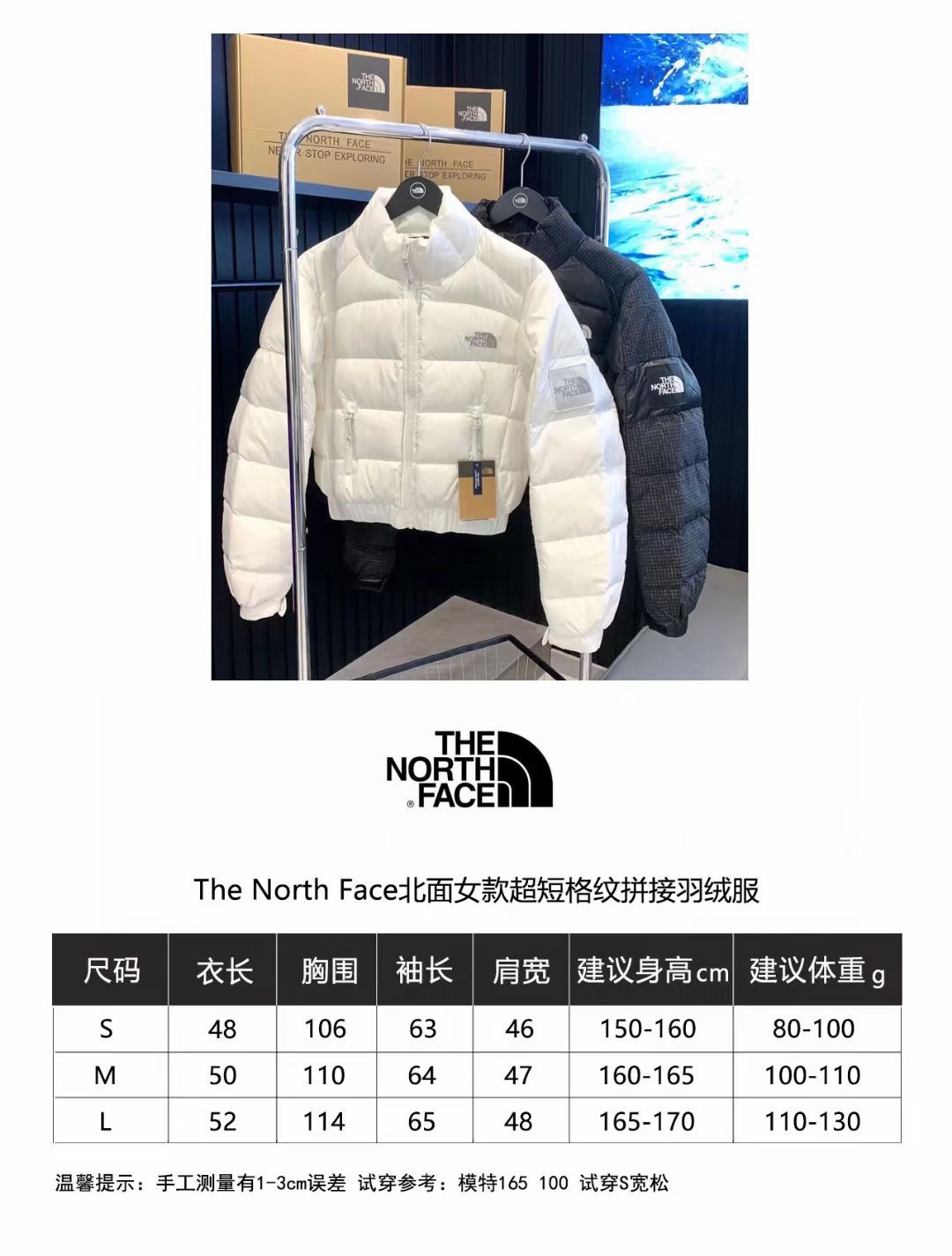 正品级 💰320 北面N16女士短款【细节实拍】 THE NORTH FACE/北面N16拼接短款羽绒服 短款羽绒服也能做冬季里的小太阳冬天穿着不会灌风,全身都暖乎乎日常搭配裤装、裙装都可以三色可选,耐脏显瘦的黑色,气质的白拼色温柔的奶茶色,每个色都很推荐,都适合冬季穿着 这种小短款羽绒服有一种说不出的调调随便搭配个收口卫裤就很潮了~满足多种不同穿法,打造百*变风格下摆松紧收腰上身穿起来更*贴合,视觉上还能优化拉长身材比例显腰身的同时自带拉腿特效,小个子姐妹不要错过让你轻轻松松穿出大长腿即视感~超长袖子加防风袖,保暖性强又时尚感拉满 尺码S-M-L