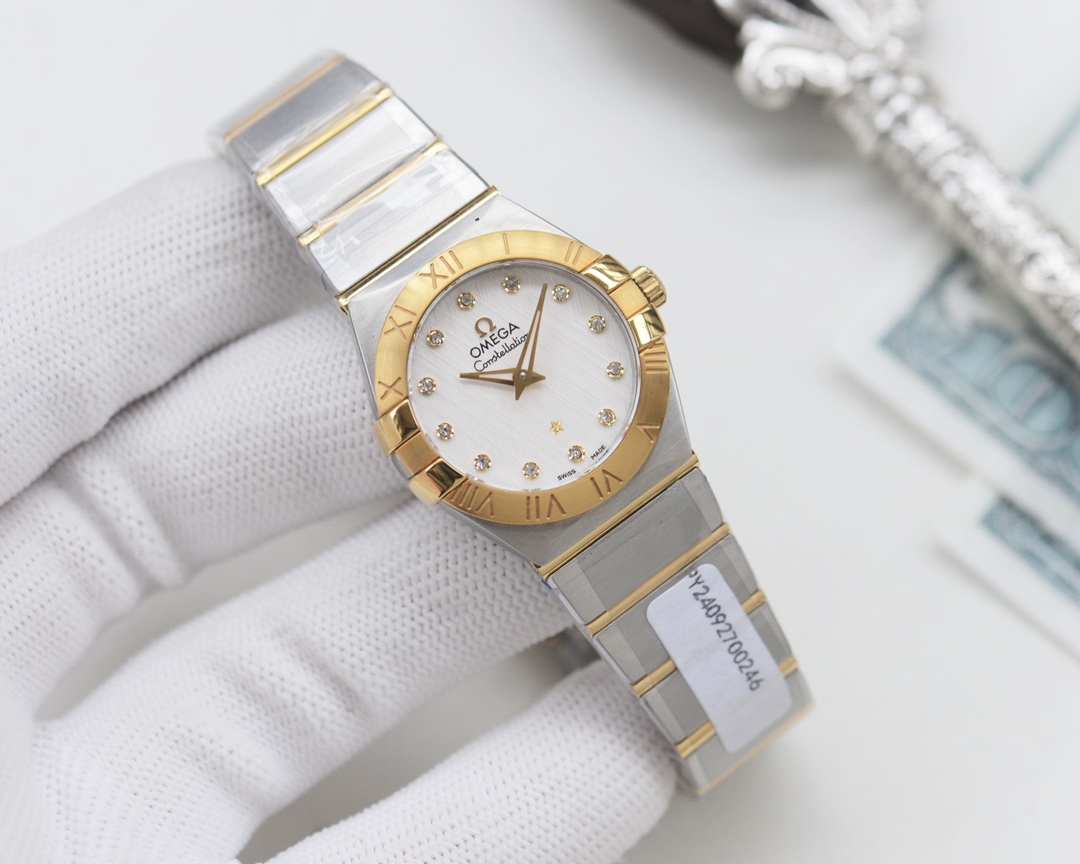 白壳1450,金壳1500,钻➕50 欧米伽/OMEGA 型号123.15.27.60.55.004。四代星座永恒经典款! 星座系列表壳表带光面款,此款硬货来了,非常过硬的内部渠道,代工厂内部留出为数不多的原单欧米茄!好东西不是经常都有.看中赶紧下手,此款星座系列.石英.钻石女表,手表直径27mm.原装欧米茄机芯型号2800.01命名cal1376石英机芯。防炫目蓝宝石镜面.手表全套316L钢材无电渡钢水.永不掉色,蝴蝶表扣LoGo由18K黄金打造.持有中国GTC检测机构证书,而且表带头粒绝非市场凸出版本,注,表带内部字体由3种大小不同风格组成字体清晰工艺精美,绝非市场一种字体连成一片,字面罗马光点放射黑色表盘镶嵌真钻刻度奢侈典雅.底盖中心图案和星星为油压成型纹理细腻饱满清晰最主要有两级凹位超强立体感,并且每个表都有三码合一独立编码。