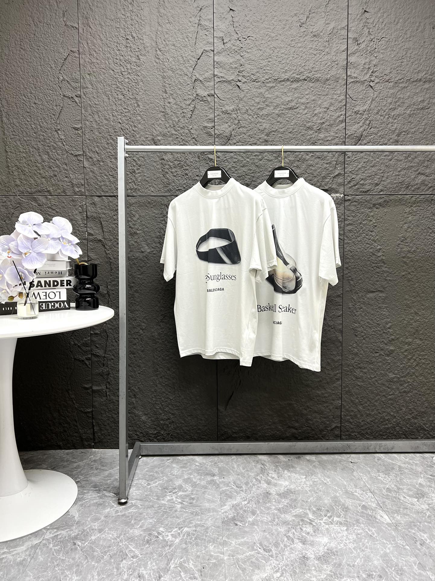 巴黎世家Balenciaga 篮球鞋短袖💰P85 2025SS新主麦上身 印花采用康丽数码直喷 还原度拉满 支持对比 区别市场烫画工艺 电脑扫描精准对位印花色泽度完全还原 面料采用对版21支200克 大货三标齐+码数贴+带Logo防尘纸 尺码:Xs-L 颜色:奶灰