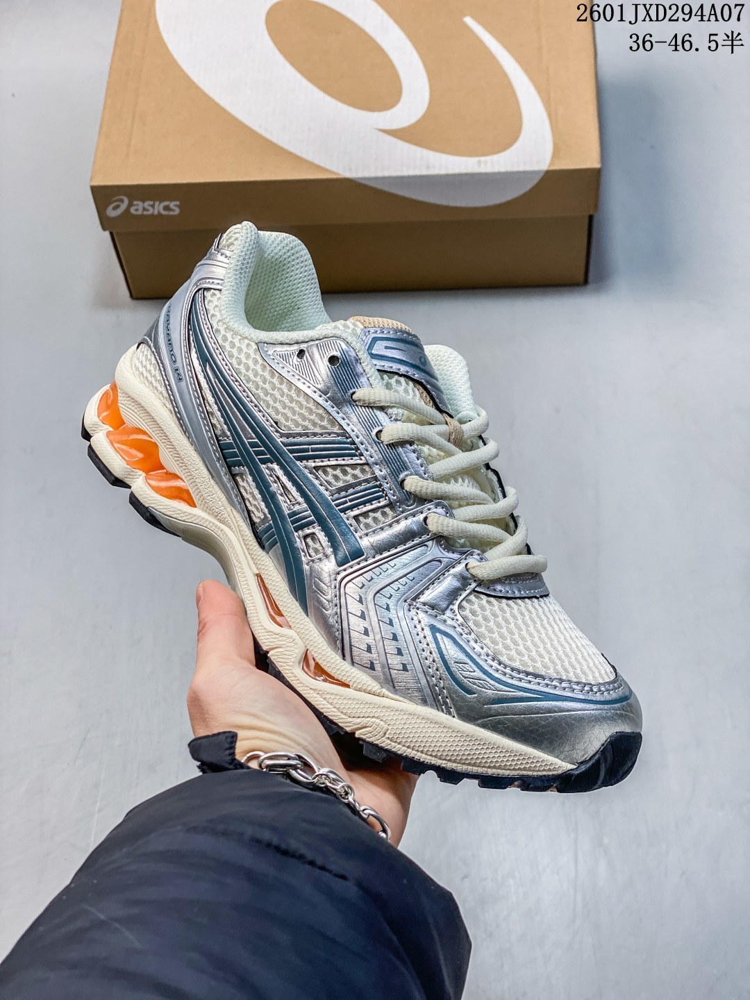 【公司级 真标】亚瑟士 Asics Gel-Kayano 14 运动休闲透气专业缓震慢跑鞋.采用工程弹性双层再生网格密度鞋面材质,后跟3D可视GEL缓震乳胶物料,升级FF BLAST PLUS全新缓震中底部位科技材质,外置高耐磨橡胶外底 稳步升级,跑出节奏. 货号: 1203A537-106 含半码 编码:WEXY1201