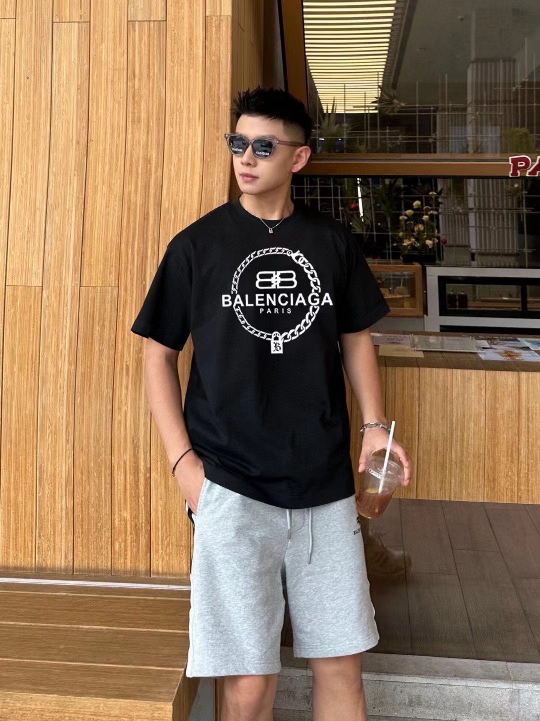 本地自取💰140 Balenciaga巴黎世家24ss数码印花短袖T恤 24年春夏新款 重工印花 定制进口260克纯棉双纱面料 高密度螺纹同缸染面料 宽松版型 男女同款 潮人必备百搭单品 颜色:黑色 白色 货号527120003 码数: S M L XL XXL