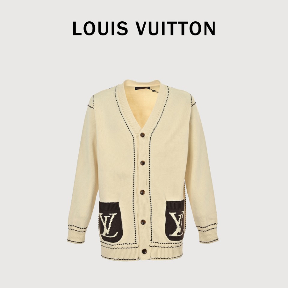路易威登1v x Tyler 24SS 联名明线口袋嵌花开衫 原15,000购入,定染纱线采用70美丽诺羊毛30晴伦32支双股纱用最先进的进口正7针织机26把纱咀提花编织耗时280分钟.口袋点缀嵌花标识图案采取电脑扫描描绘的图案,贴兜位置根据衣身对花车缝,成衣吸睛细节相当精致.特殊明线走针挂毛设计,底部多余纱线由人工抽出剪断打结埋线,肌理线条更有立体感和层次感.毛料密度细密编织紧致,触感柔糯中又带骨架子感,挺阔度与垂坠感更强,手感扎实不扎身更保暖.纽扣采用天然牛角扣,联名新款洗水唛,基础辅料配备齐全参照原版,抢先出货,穿在人前. 货号830240003